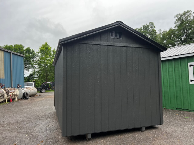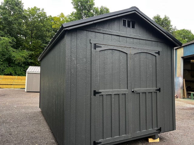Shed Type: Classic Shed Building Size: 10′ x 16′ Siding Type: LP SmartSide Siding Color: Sherwin Williams (Iron Ore ) Trim Color: Sherwin Williams (Iron Ore ) Roof Color: Black Doors/Lofts: 6′ double doors,