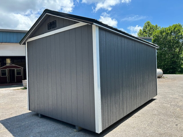 Shed Type: Classic Shed Building Size: 10′ x 16′ Siding Type: Smart Panel Siding Color: Peppercorn Trim Color: White Roof Color: Black Doors: 72″ double doors Windows: Other: