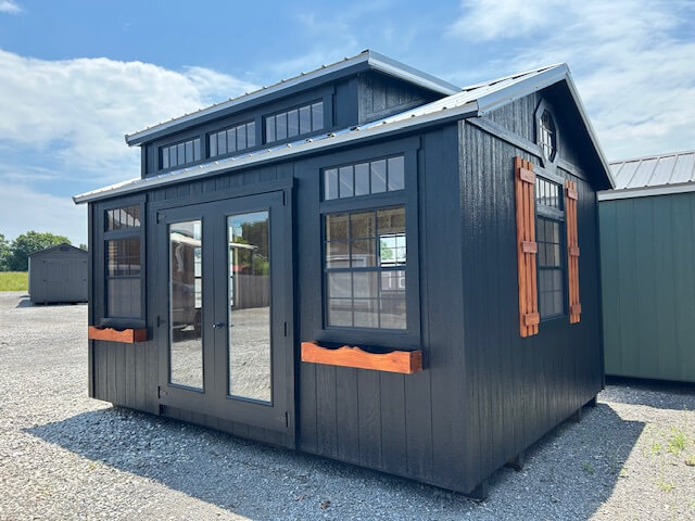 Other: (3) sets of shutters(Bronze), (2) flower boxes, basic electrical package, 10′ shed dormer