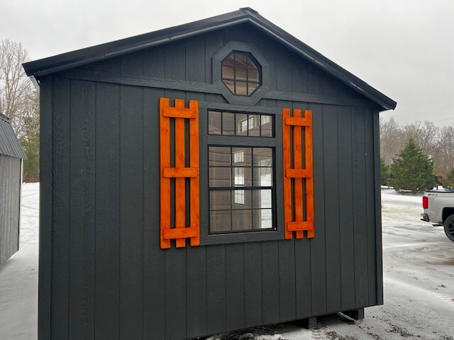 Other: (3) sets of shutters(Bronze), (2) flower boxes, basic electrical package, 10′ shed dormer